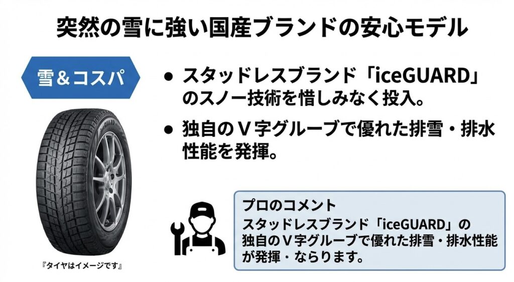 突然の雪に備えつつ、国産ブランドの安心感とコストパフォーマンスを求める方に適しています。