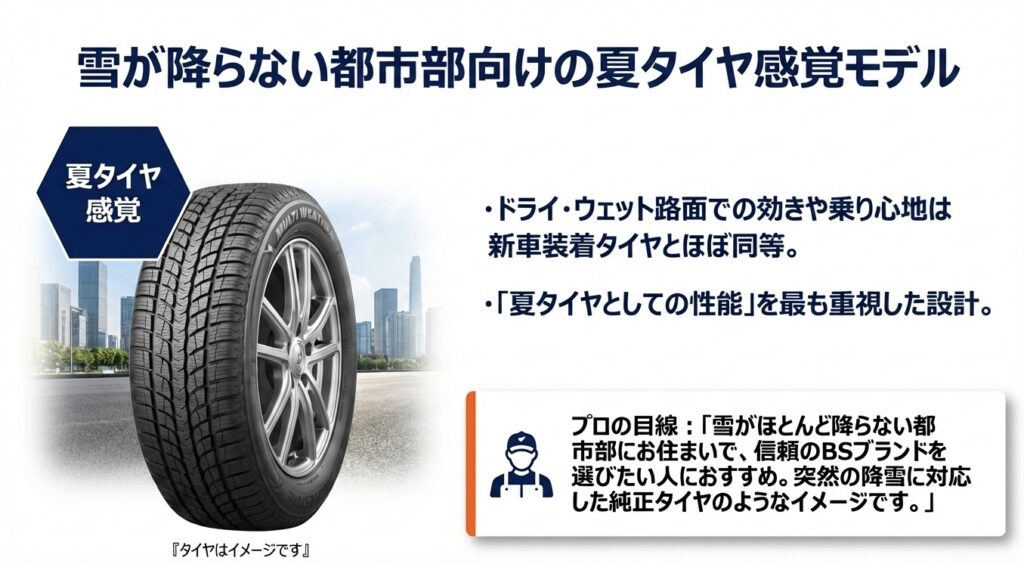雪がほとんど降らない都市部にお住まいで、信頼のブリヂストンブランドを選びたい人におすすめです!