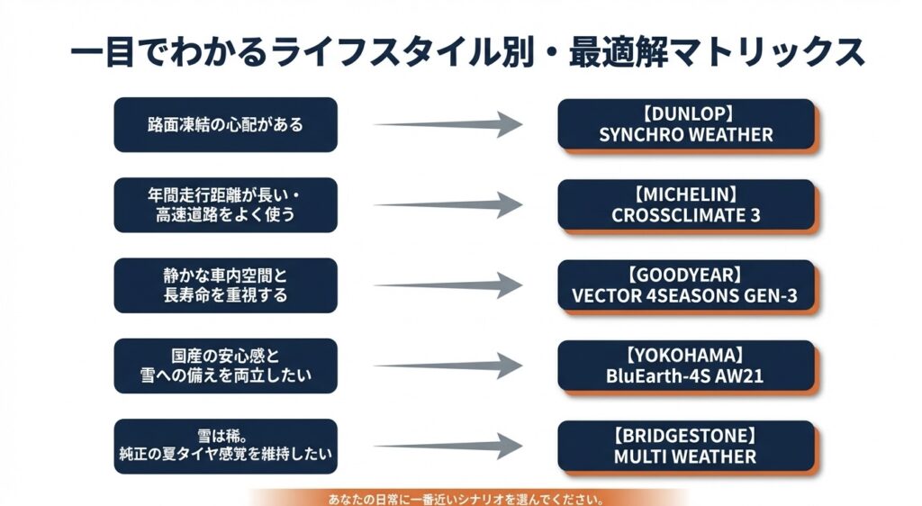 オールシーズンタイヤ選びの参考になれば嬉しいです。