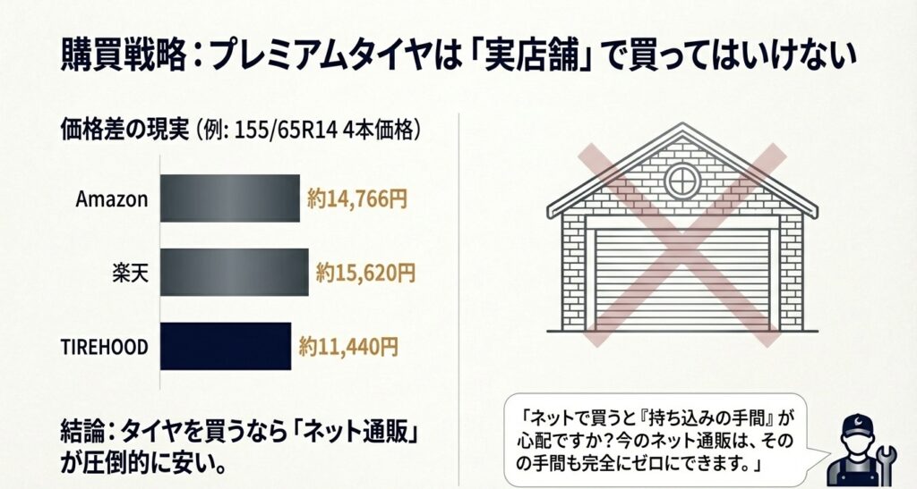 ちなみに、国産タイヤと輸入タイヤの値段の差はこんな感じです。